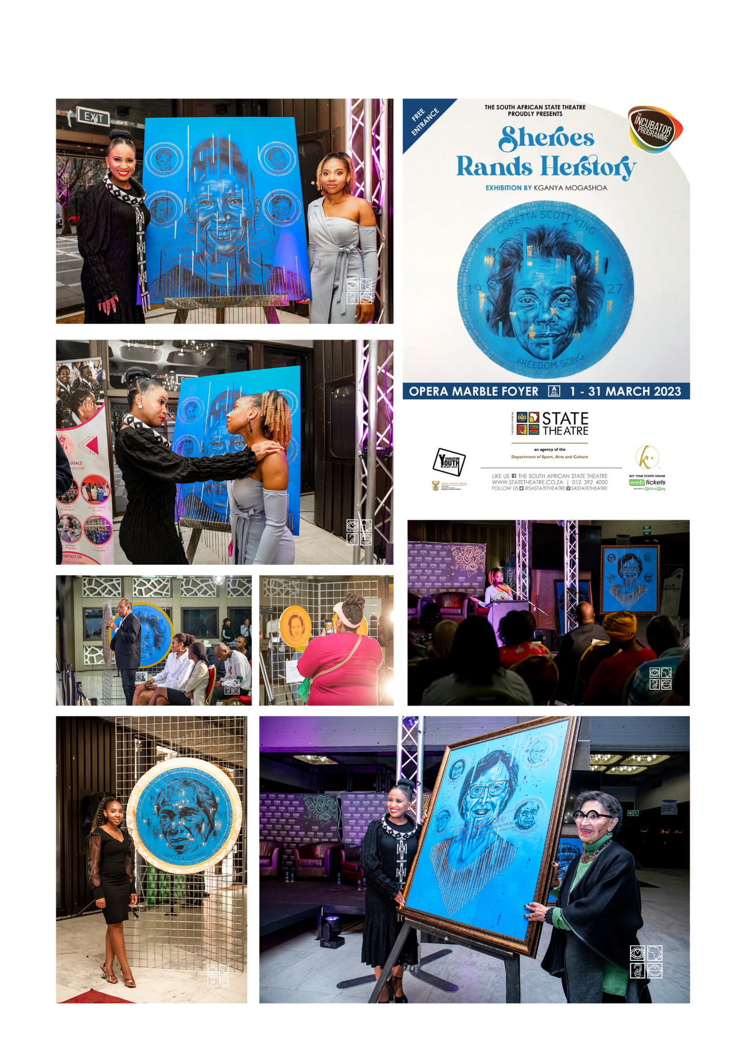 Sheroes Rands Herstory was a March 2023 exhibition at the South African State Theatre by Kganya Mogashoa, celebrating women's resilience and contributions. Through mixed-media art, it explored societal perceptions of women, particularly their representation on banknotes and coins and their financial, social, and economic power.